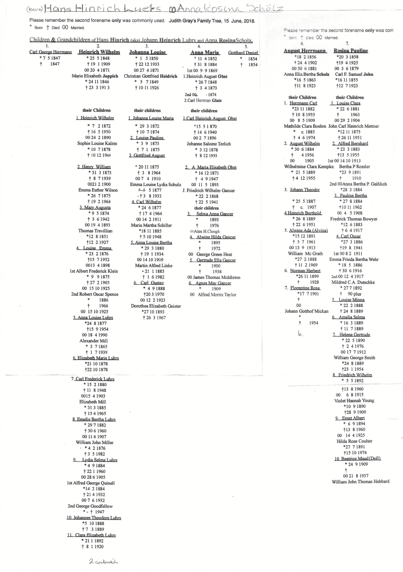 The Legacy of Johann Heinrich Luhrs & Anna Rosina Scholz